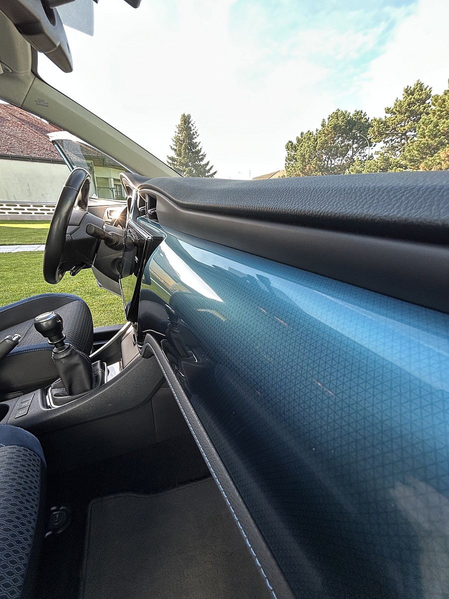 Das Auto ist mit Navigationssystem, Sportsitzen und Rückfahrkamera ausgestattet.